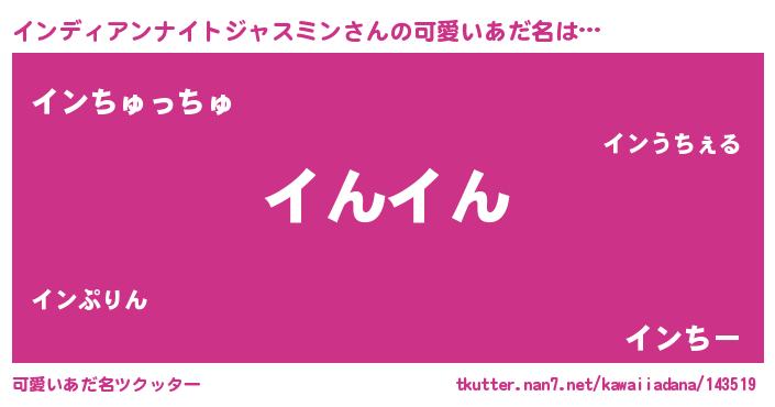 | ヒーロー風カッコイイあだ名 | 『スーパーインディアンナイトジャスミン』 |