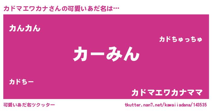 | 恥ずかしいあだ名 | 『プリティーカドマエワカナ』『カドちん』 |