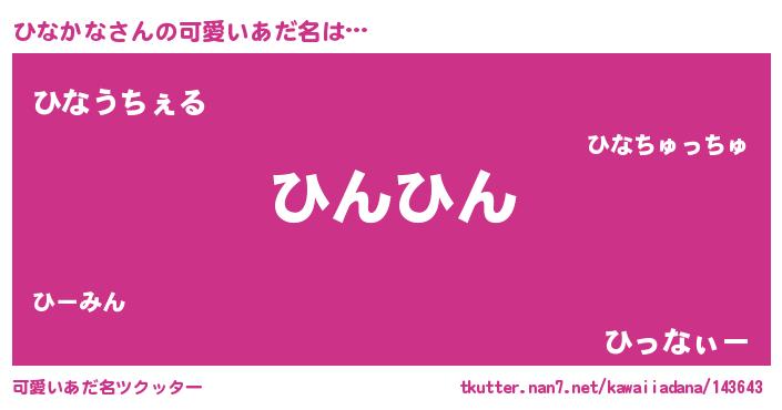 | 意味不明あだ名 | 『ペロリンひなかな』『自称ひなかな』 |