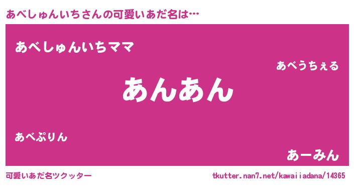 | 恥ずかしいあだ名 | 『プリティーあべしゅんいち』『あべちん』 |