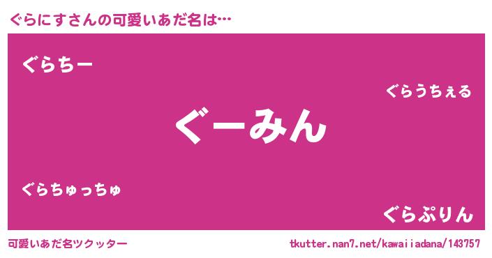 | 意味不明あだ名 | 『ぐらにすフォーエバー』『自称ぐらにす』 |