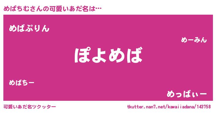 | 意味不明あだ名 | 『住所不定無職めばちむ(93歳)』 |