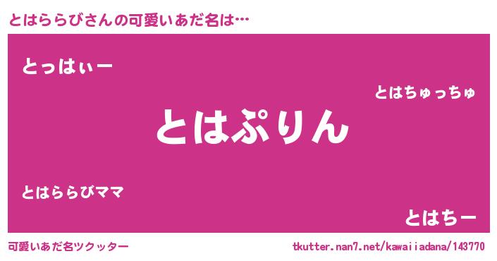 | ヘコむあだ名 | 『とはぷりん』『なまこ酢』 |
