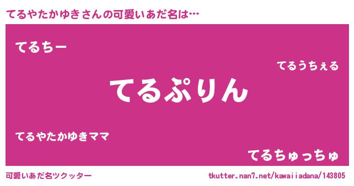 | 男性向けラノベタイトル風あだ名 | 『てるやたかゆき~年齢イコール彼女いない歴の魔法使い~』 |