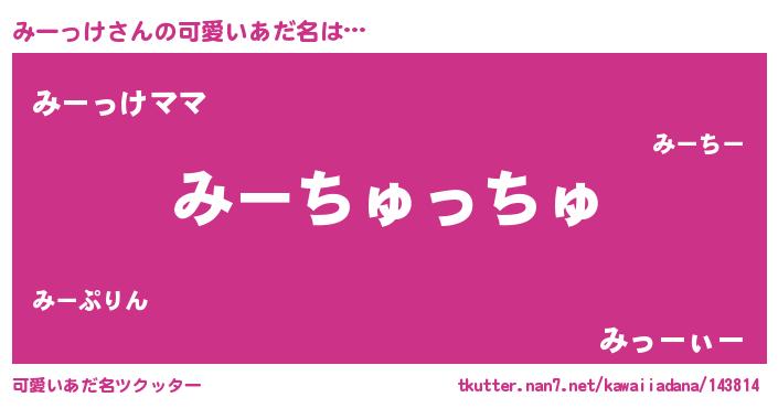 | ヒーロー風カッコイイあだ名 | 『天空の使者みーっけ』『ネオミーッケ』 |