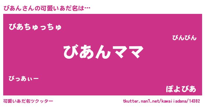 | ヘコむあだ名 | 『びあん(笑)』『びあにー』 |