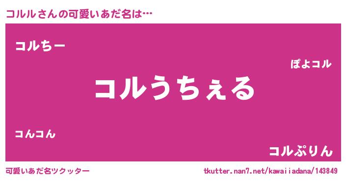 | 意味不明あだ名 | 『自称コルル』『コルルフォーエバー』 |