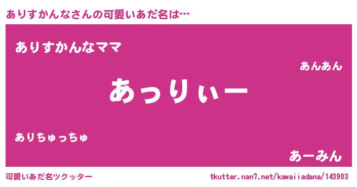 | 意味不明あだ名 | 『とにかく怪しいありすかんな』 |