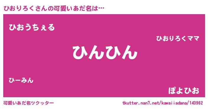 | 恥ずかしいあだ名 | 『プリティーひおりろく』『ひおちん』 |