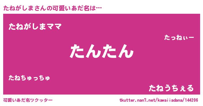 | 恥ずかしいあだ名 | 『プリティーたねがしま』『たねちん』 |