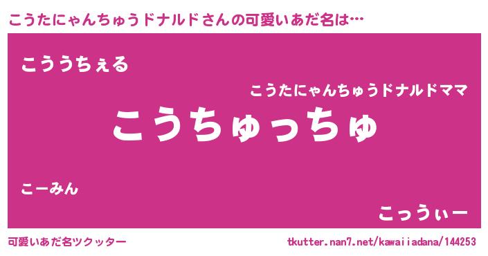 | 女子向けラノベタイトル風あだ名 | 『死神こうたにゃんちゅうドナルドの再婚』 |