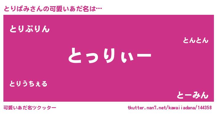 | 女子向けラノベタイトル風あだ名 | 『とりばみの卵を拾いまして』 |