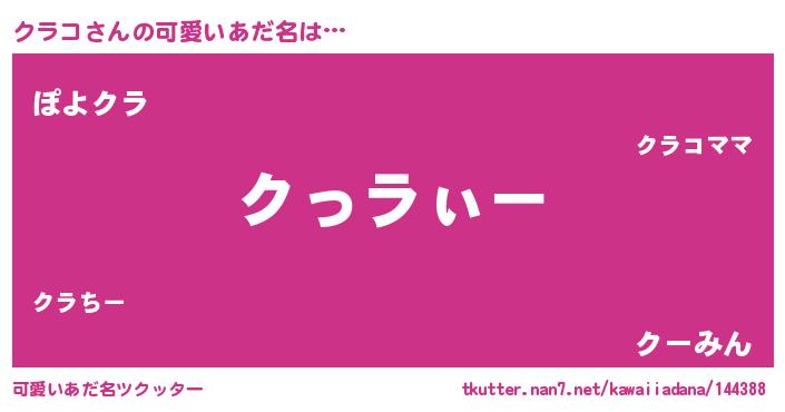 | ヘコむあだ名 | 『クラを』『クラコ(爆)』『なまこ酢』 |
