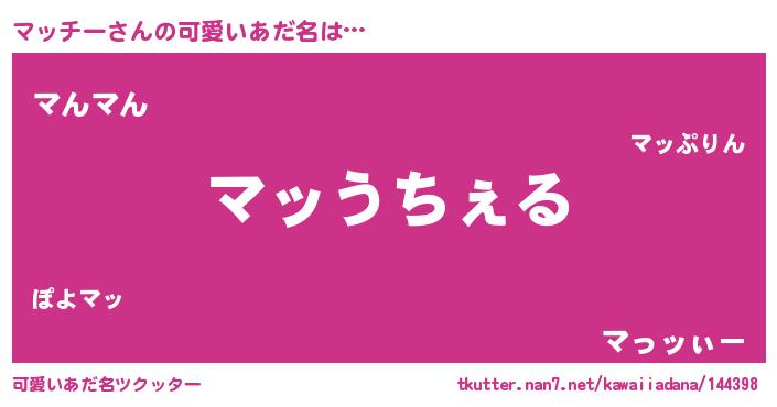 | 意味不明あだ名 | 『自称マッチー』『ペロリンマッチー』 |