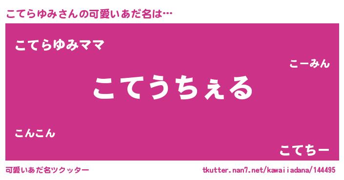 | ヘコむあだ名 | 『こてらゆみ(笑)』『豆乳』 |