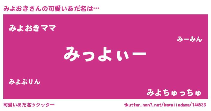 | 男性向けラノベタイトル風あだ名 | 『みよおきの嫁は女の子じゃないと思った?』 |