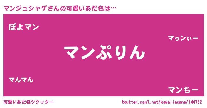 | 男性向けラノベタイトル風あだ名 | 『転生したらマンジュシャゲだった件』 |