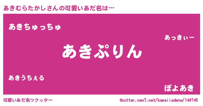 | ヘコむあだ名 | 『あきっぺ』『あきむらたかし(震え声)』 |