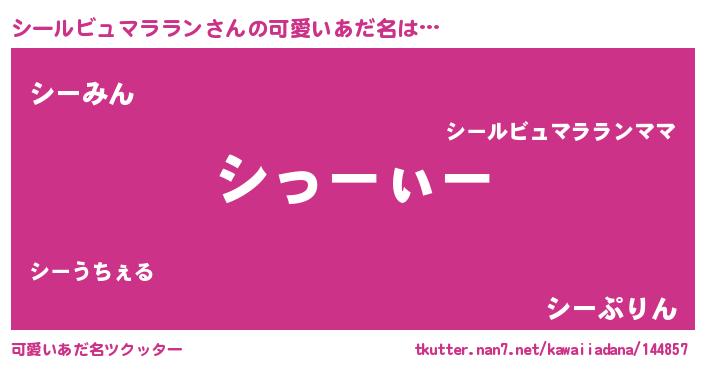 | 男性向けラノベタイトル風あだ名 | 『シールビュマラランの嫁は女の子じゃないと思った?』 |