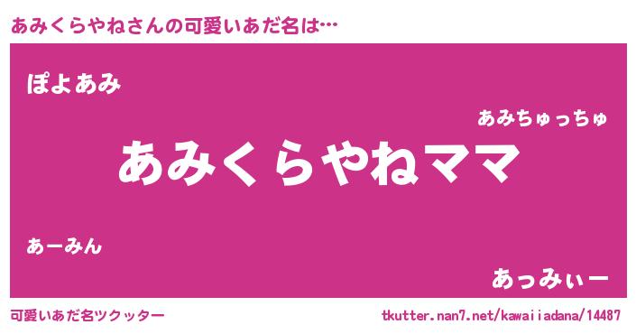| 意味不明あだ名 | 『永久保存あみくらやね』 |