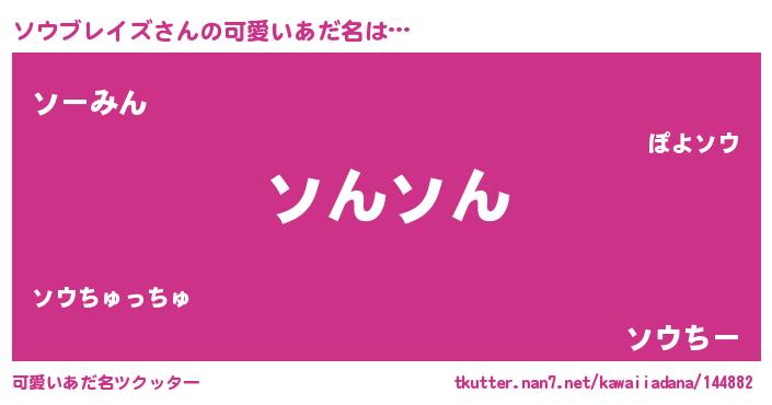 | 恥ずかしいあだ名 | 『プリティーソウブレイズ』『ソウっちょ』 |