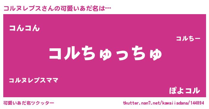 | ヘコむあだ名 | 『コルにー』『なまこ酢』『コルっ子』 |