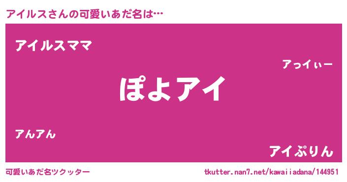 | 男性向けラノベタイトル風あだ名 | 『この素晴らしい世界にアイルスを!』 |