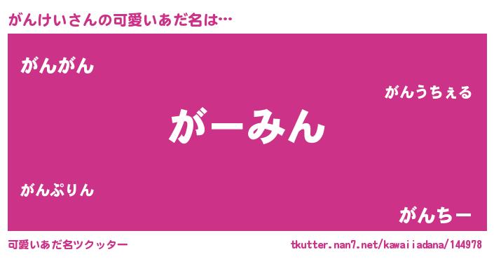 | 恥ずかしいあだ名 | 『プリティーがんけい』『がんっちょ』 |