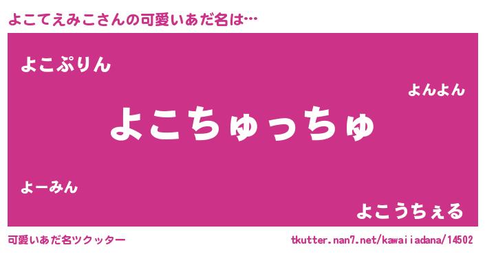 | ヘコむあだ名 | 『よこにゅー』『よこてえみこ(笑)』 |