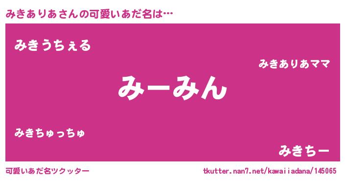| 意味不明あだ名 | 『自称みきありあ』『永久保存みきありあ』 |
