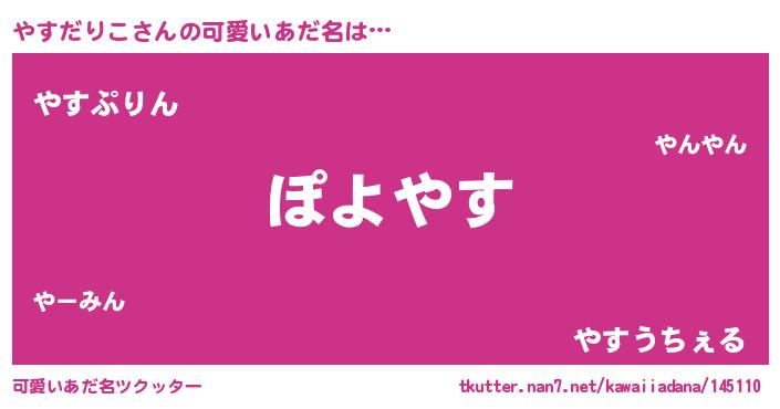 | 男性向けラノベタイトル風あだ名 | 『この素晴らしい世界にやすだりこを!』 |