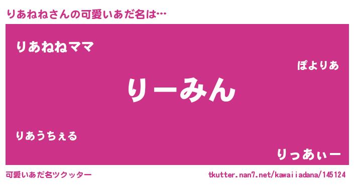 | ヘコむあだ名 | 『りあねね(苦笑)』『りあ太郎』 |