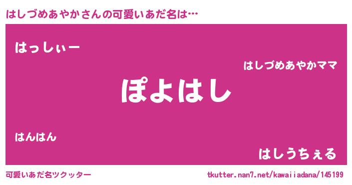 | ポケモン風あだ名 | 『ハーシイ』『ヒハシヅメアヤカ』 |
