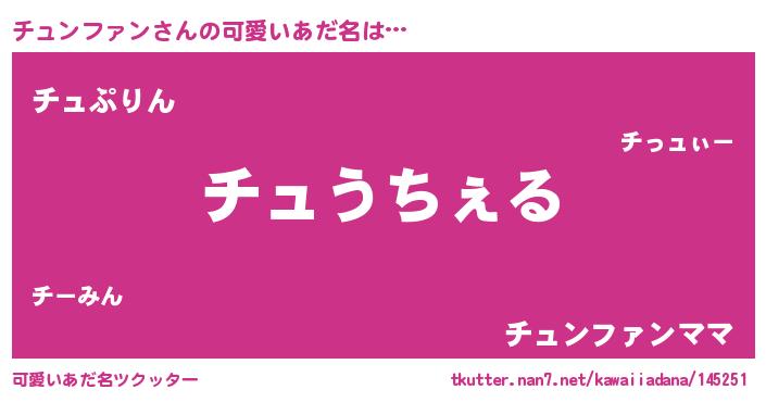 | 恥ずかしいあだ名 | 『チュンファンデラックス』『チュちん』 |