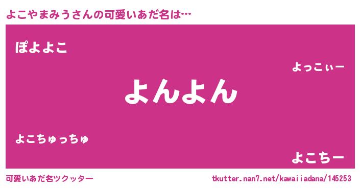| 恥ずかしいあだ名 | 『プリティーよこやまみう』『よこっちょ』 |