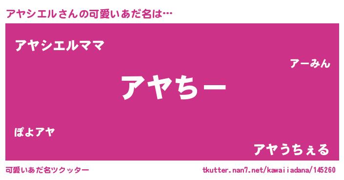 | ファンタジー風あだ名 | 『エターナルアヤシエルー』『ゼアヤトゥ』 |