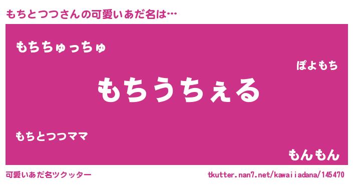 | 意味不明あだ名 | 『自称もちとつつ』『ペロリンもちとつつ』 |