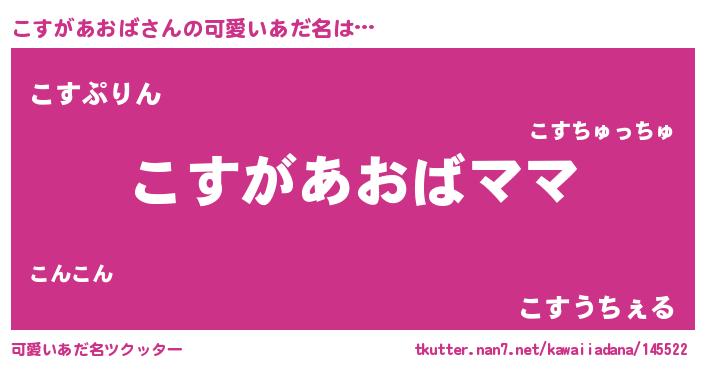 | ヘコむあだ名 | 『こすがあおば(小並感)』『こすっふぃ~』 |