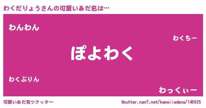 | 恥ずかしいあだ名 | 『プリティーわくだりょう』『わくっちょ』 |