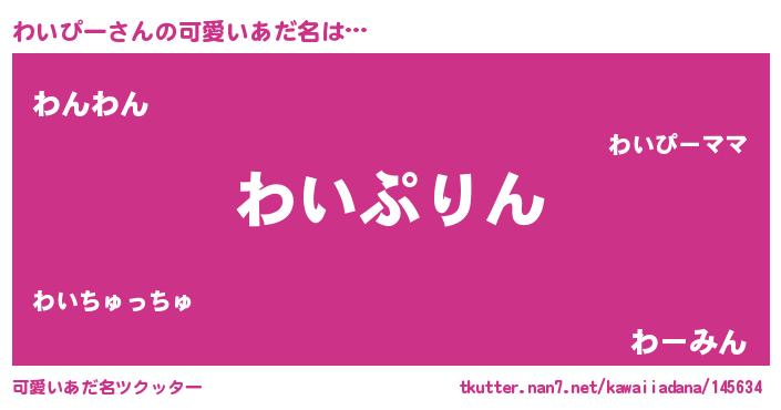 | 男性向けラノベタイトル風あだ名 | 『ワイピースレイヤー』『わいぴーの憂鬱』 |