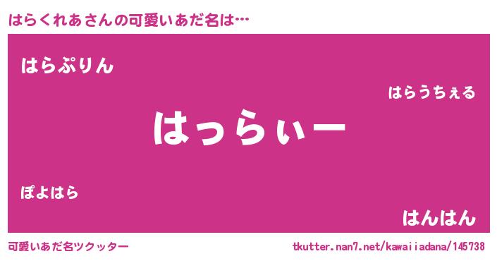 | ポケモン風あだ名 | 『ヒハラクレア』『ハラキング』 |