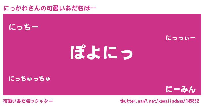 | 男性向けラノベタイトル風あだ名 | 『魔弾の王とにっかわ』 |