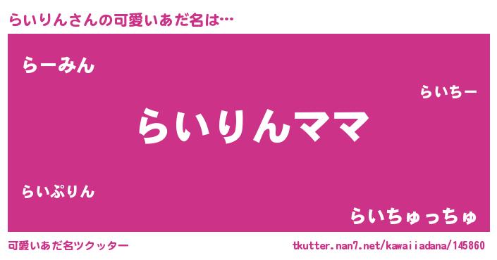 | ヘコむあだ名 | 『らいりん(苦笑)』『つくし』 |