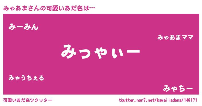 | 女子向けラノベタイトル風あだ名 | 『みゃあまは平凡を望む』 |