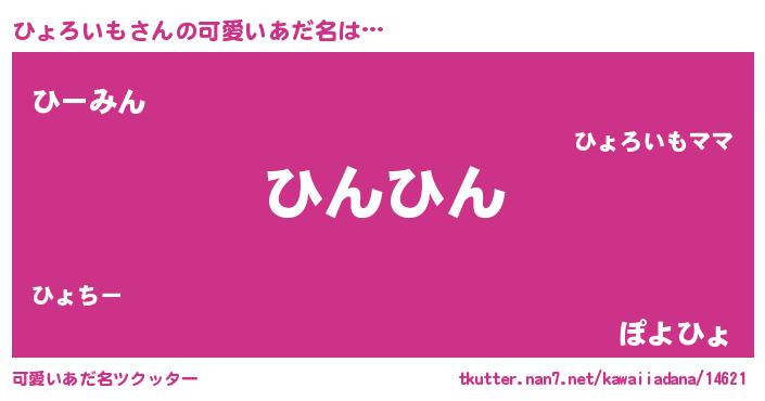 | 2回繰り返すあだ名 | 『ひょひょ』『つかつか』『ひひょょ』 |