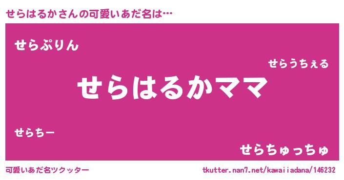 | 意味不明あだ名 | 『永久保存せらはるか』『自称せらはるか』 |