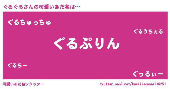 | ヘコむあだ名 | 『ぐるっちょ』『つくし』『ぐるもー』 |