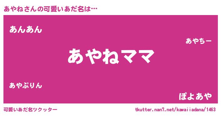 | 欧米人風あだ名 | 『ダルビッシュあやね』『マイケルあやね』 |