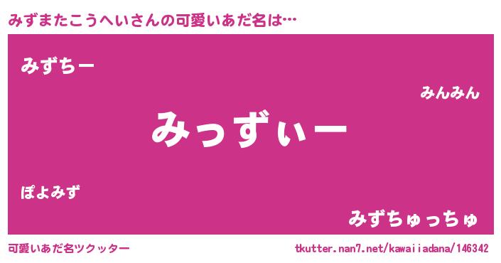 | 男性向けラノベタイトル風あだ名 | 『みずまたこうへいの嫁は女の子じゃないと思った?』 |