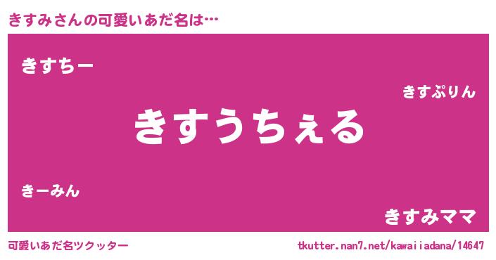 | 男性向けラノベタイトル風あだ名 | 『Re:きすみから始める異世界生活』 |